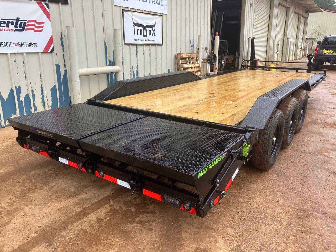 For sale in Waskom, TX: 2026 Load Trail 102" x 24' triple axle bumperpull carhauler with 21,000 lb GVWR, 3 x 7K Dexter spring axles (electric brakes), drive-over fenders, and MAX ramps w/dove.