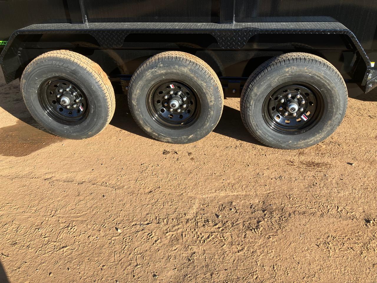 3 - 7,000 Lb Dexter Spring Axles (3 Elec FSA Brakes) ST235/80 R16 LRE 10 Ply. (BLACK WHEELS) Coupler 2-5/16" Adj. Rd. 12 lb. (Standard Neck & Coupler) Diamond Plate Fenders (weld-on) 16" Cross-Members 36" Dump Sides w/36" 2 Way Gate (7 Gauge Floor) REAR Slide-IN Ramps 80" x 16" Jack Spring Loaded Drop Leg 2-10K Lights LED (w/Cold Weather Harness) 4 - D-Rings 4" Weld On Front Tool Box (Full Width Between Risers) Telescopic Cylinder Standard Battery Wall Charger(5 Amp) Tarp Kit Top Mount Rear Support Stands (2" x 2" Tubing) 1 - MAX-STEP (30") Black (w/Primer)