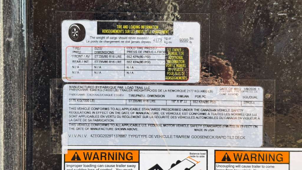 - Manufacturer warranty: Load Trail warranty varies by model/coverage—confirm details at time of sale.