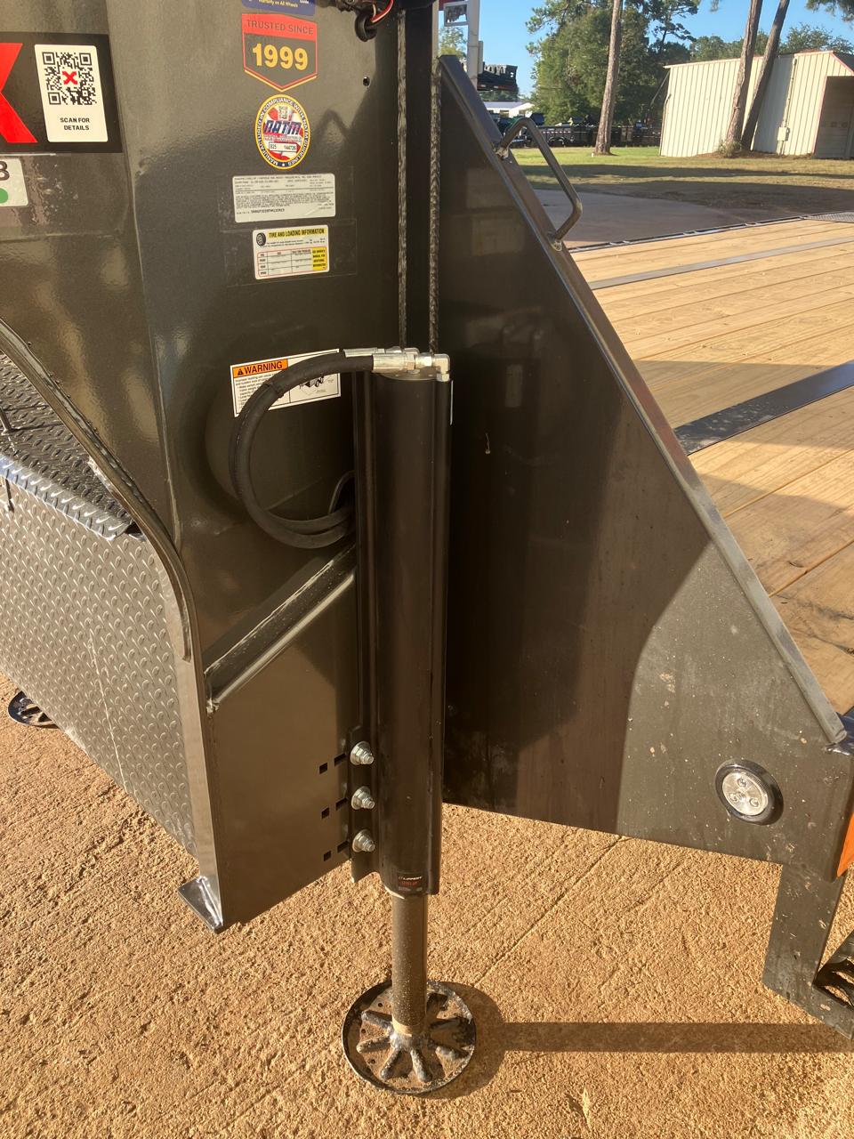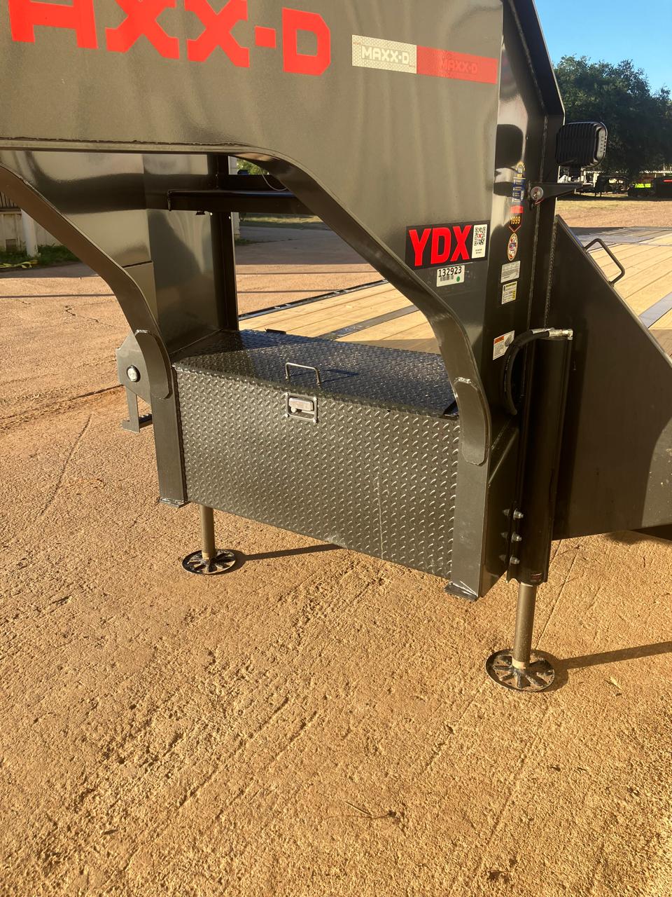 2 5/16" 30K Round gooseneck coupler 2-Hydraulic jacks Standard height Engineered I-beam neck W/ front toolbox & winch plate between risers Engineered I-beam frame with torque tube Junior beam on 12" centers 6" Channel outer frame 12' Hydraulic dovetail Rubber infused wood on runners & traction bars on knife 2-15K Dexter Electric/Hydraulic disc brakes axles Adjustable suspension ST215/75R17.5 H-16ply Radial tires on duals Spare tire mount with tire 2X8 Treated wood floor Flushmount LED'S/standard wiring 1-48" Normal side mount tool box AGM group 31 battery 4-Function wireless remote 2 Rear facing cargo lights MAXXD GRAY METALLIC & PRIMER