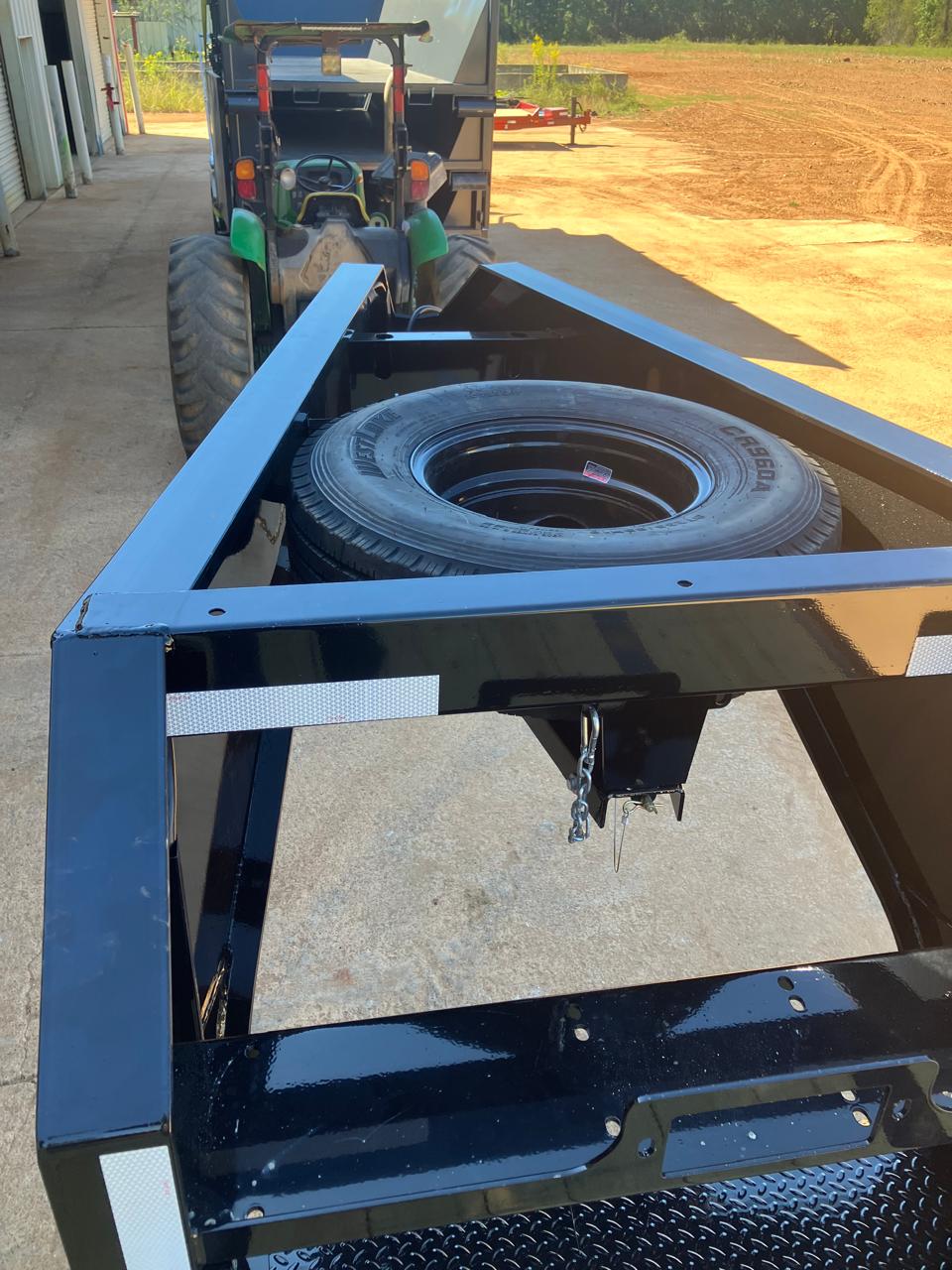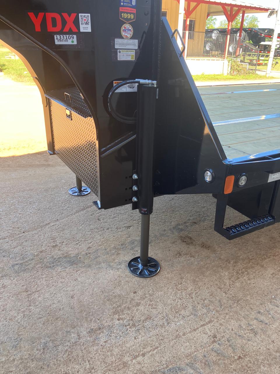 25,990 LB GVWR C17: 2 5/16" 30K ROUND GN COUPLER J09: 2-HYDRAULIC JACKS N65: STANDARD HEIGHT ENG. NECK W/ FRONT TOOLBOX & WINCH PLATE F114: ENGINEERED I-BEAM FRAME WITH TORQUE TUBE X18: 3" I-BEAM ON 12" CENTERS R06: 6" CHANNEL OUTER FRAME D121: 12' HYD DOVETAIL W/ BLKWOOD ON RUNNERS & TRAC BARS ON KNIFE A40: 2-12K ELECTRIC/HYDRAULIC BRAKE AXLES S05: HDSS SUSPENSION 2 AXLES T28: DUALS (9) ST235/85R16 G TIRES for 2-10/12K P14: NOT APPLICABLE E04: 2X8 TREATED WOOD FLOOR L03: FLUSHMOUNT LED'S / STANDARD SEALED WIRING HARNESS O01: WET BLACK & PRIMER K09: 1x 48" STANDARD SIDE MOUNT TOOLBOX FOR HYDRAULIC UPGRADE Y64: WIRELESS REMOTE W/HYD&POWER OPTIONS W/ NOCO BATTERY CHARGERS Y15: AGM GROUP 31 BATTERY Y65: SPARE TIRE AND MOUNT