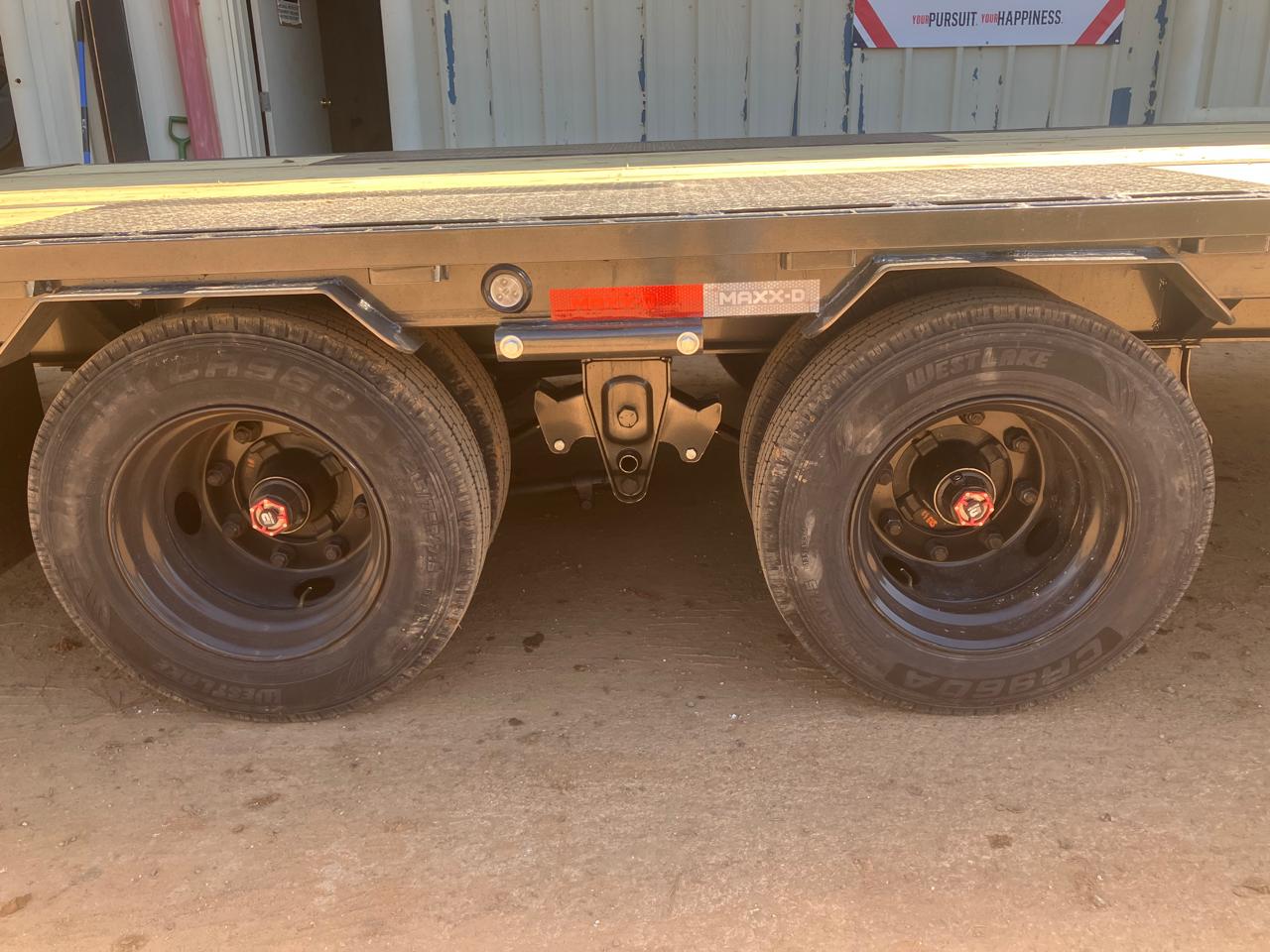 G18: 25,990 LB GVWR C17: 2 5/16" 30K ROUND GN COUPLER J09: 2-HYDRAULIC JACKS N65: STANDARD HEIGHT ENG. NECK W/FR T-BOX, WINCH PLT, & SP MT F114: ENGINEERED I-BEAM FRAME WITH TORQUE TUBE X20: 3" I-BEAM ON 14" CENTERS R06: 6" CHANNEL OUTER FRAME D36: 5' DOVETAIL/MAXXD-OUT RAMPS A64: 2-15K ELECTRIC/HYDRAULIC BRAKE AXLES S05: HDSS SUSPENSION 2 AXLES T30: DUALS (9) ST215/75R17.5 H TIRES for 2-15/16K P14: NOT APPLICABLE E04: 2X8 TREATED WOOD FLOOR L05: FLUSHMOUNT LED'S/SEALED WIRING HARNESS/ BATTERY POWER PACK O02: MAXXD GRAY METALLIC & PRIMER K49: 1x 48" STANDARD T-BOX FOR HYD & 1x 48"SLIDING SIDE MOUNT BOX $500: BEST SELLERS DISCOUNT $500 Z21: SLIDING RATCHET BAR ONLY
