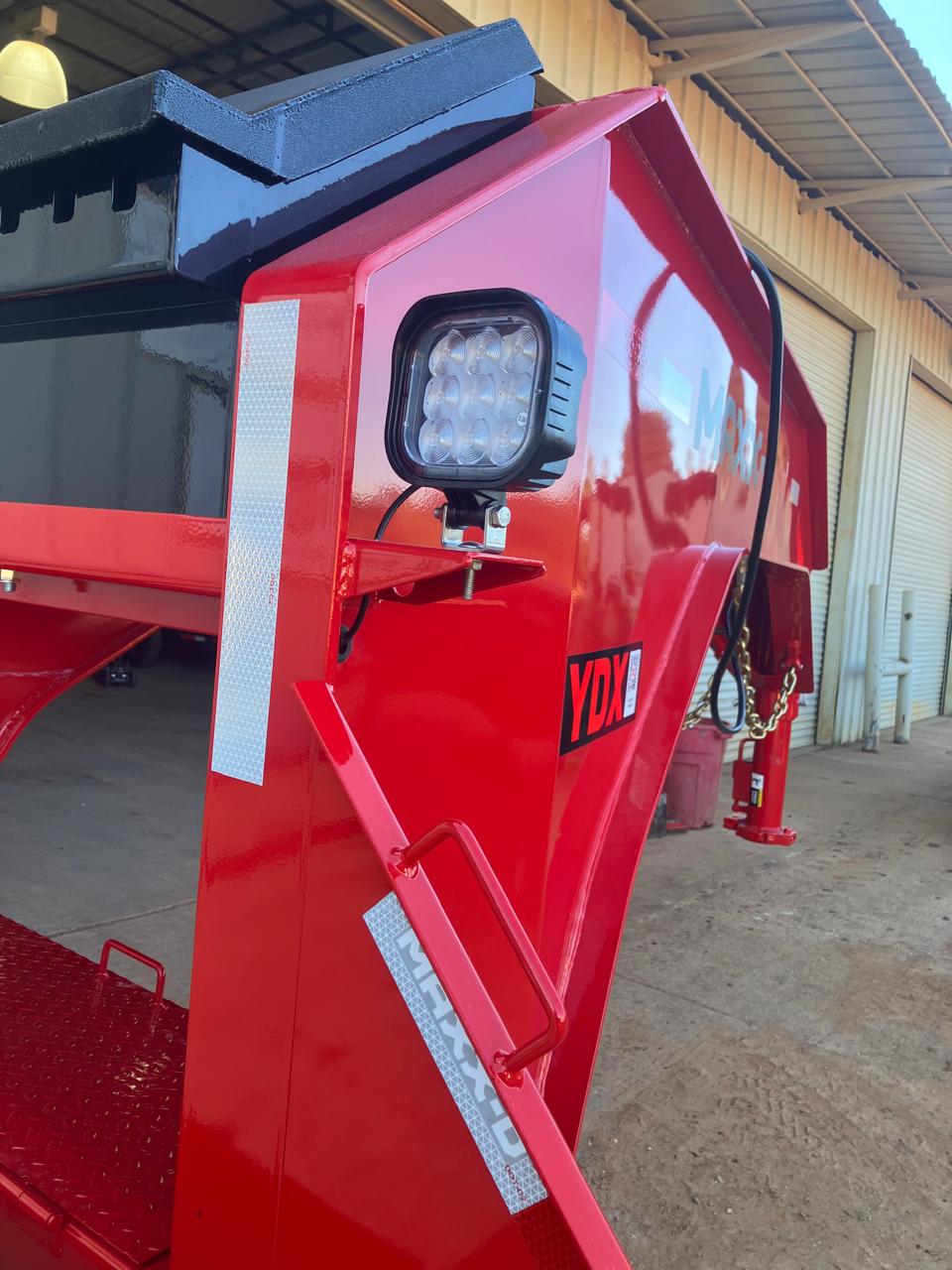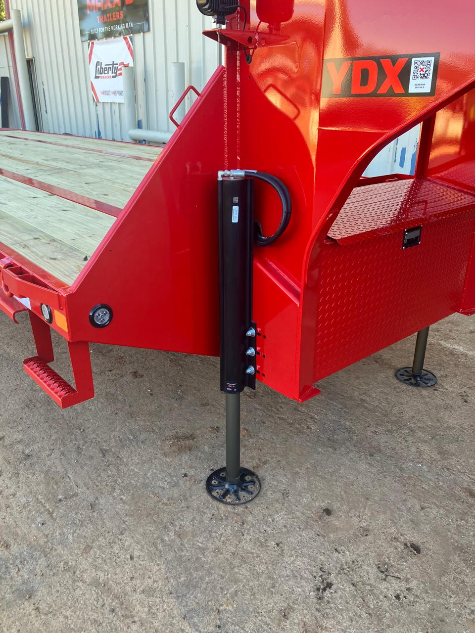 G18: 25,990 LB GVWR C17: 2 5/16" 30K ROUND GN COUPLER J09: 2-HYDRAULIC JACKS N65: STANDARD HEIGHT ENG. NECK W/FR T-BOX, WINCH PLT, & SP MT F114: ENGINEERED I-BEAM FRAME WITH TORQUE TUBE X18: 3" I-BEAM ON 12" CENTERS R06: 6" CHANNEL OUTER FRAME D121: 12' HYD DOVETAIL W/ BLKWOOD ON RUNNERS & TRAC BARS ON KNIFE A64: 2-15K ELECTRIC/HYDRAULIC BRAKE AXLES S05: HDSS SUSPENSION 2 AXLES T30: DUALS (9) ST215/75R17.5 H TIRES for 2-15/16K P14: NOT APPLICABLE E04: 2X8 TREATED WOOD FLOOR L03: FLUSHMOUNT LED'S / STANDARD SEALED WIRING HARNESS O08: FLAME RED & PRIMER Z21: SLIDING RATCHET BAR ONLY K09: 1x 48" STANDARD SIDE MOUNT TOOLBOX FOR HYDRAULIC UPGRADE Y64: WIRELESS REMOTE W/HYD&POWER OPTIONS W/ NOCO BATTERY CHARGERS Y15: AGM GROUP 31 BATTERY Y61: 2x REAR FACING CARGO LIGHTS Y65: SPARE TIRE AND MOUNT K42: HOT SHOT RISER BOX/CHAIN RACK